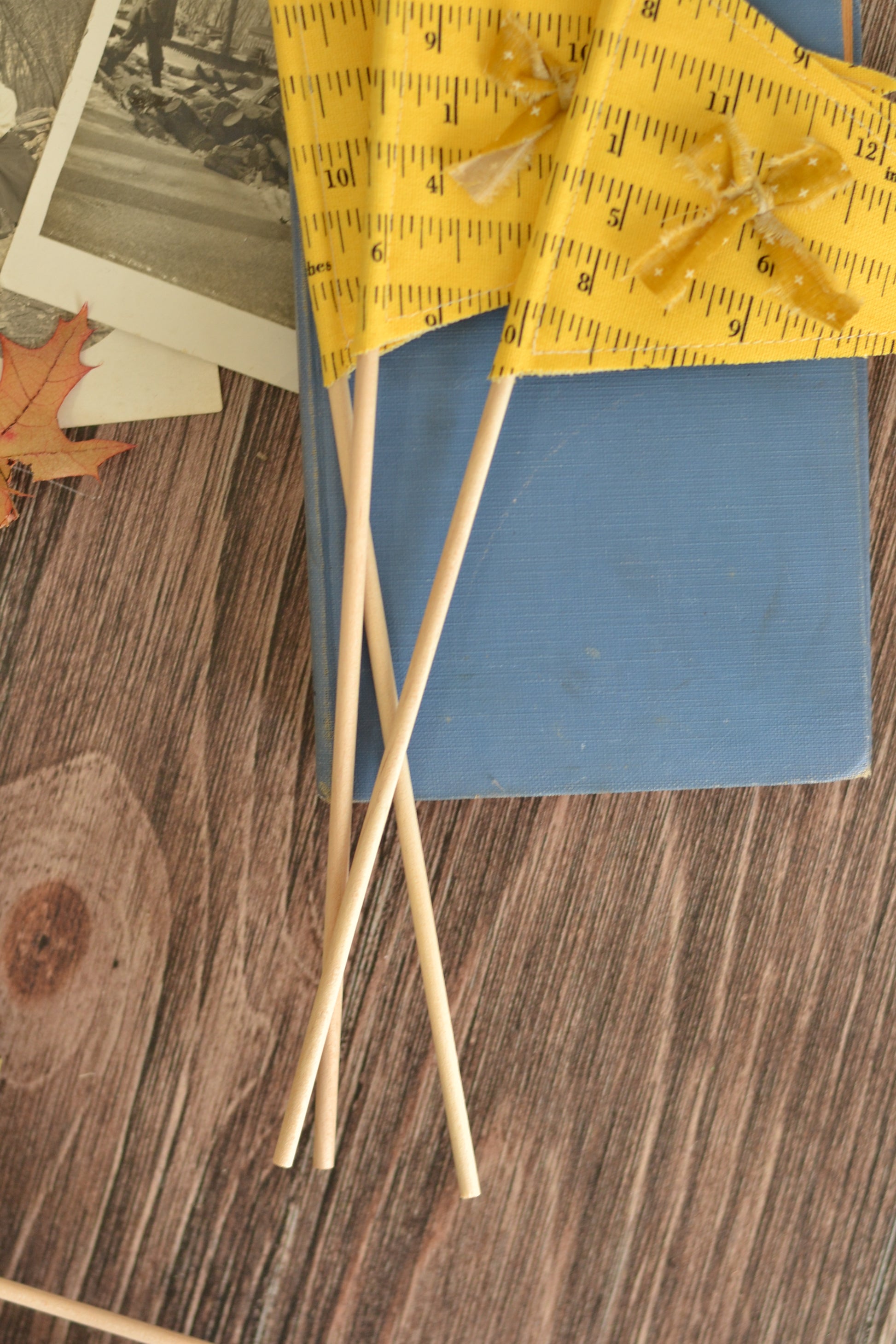 Handmade pennant flag on a dowel. Perfect for plants or a cute vase.