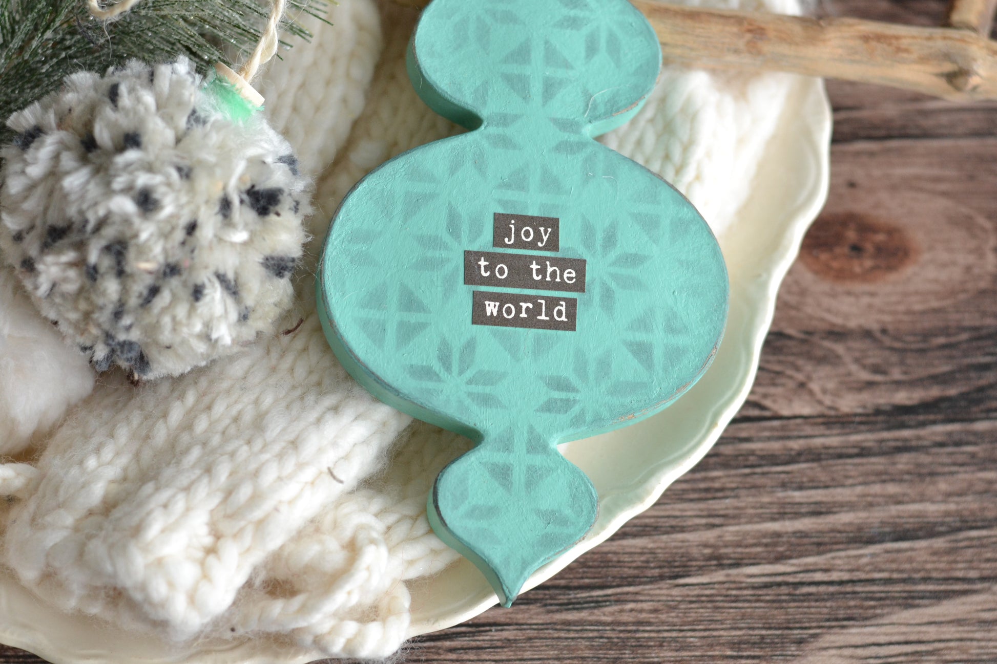 Mint 'Joy to the World' and Pom Pom Ornament SET - both included