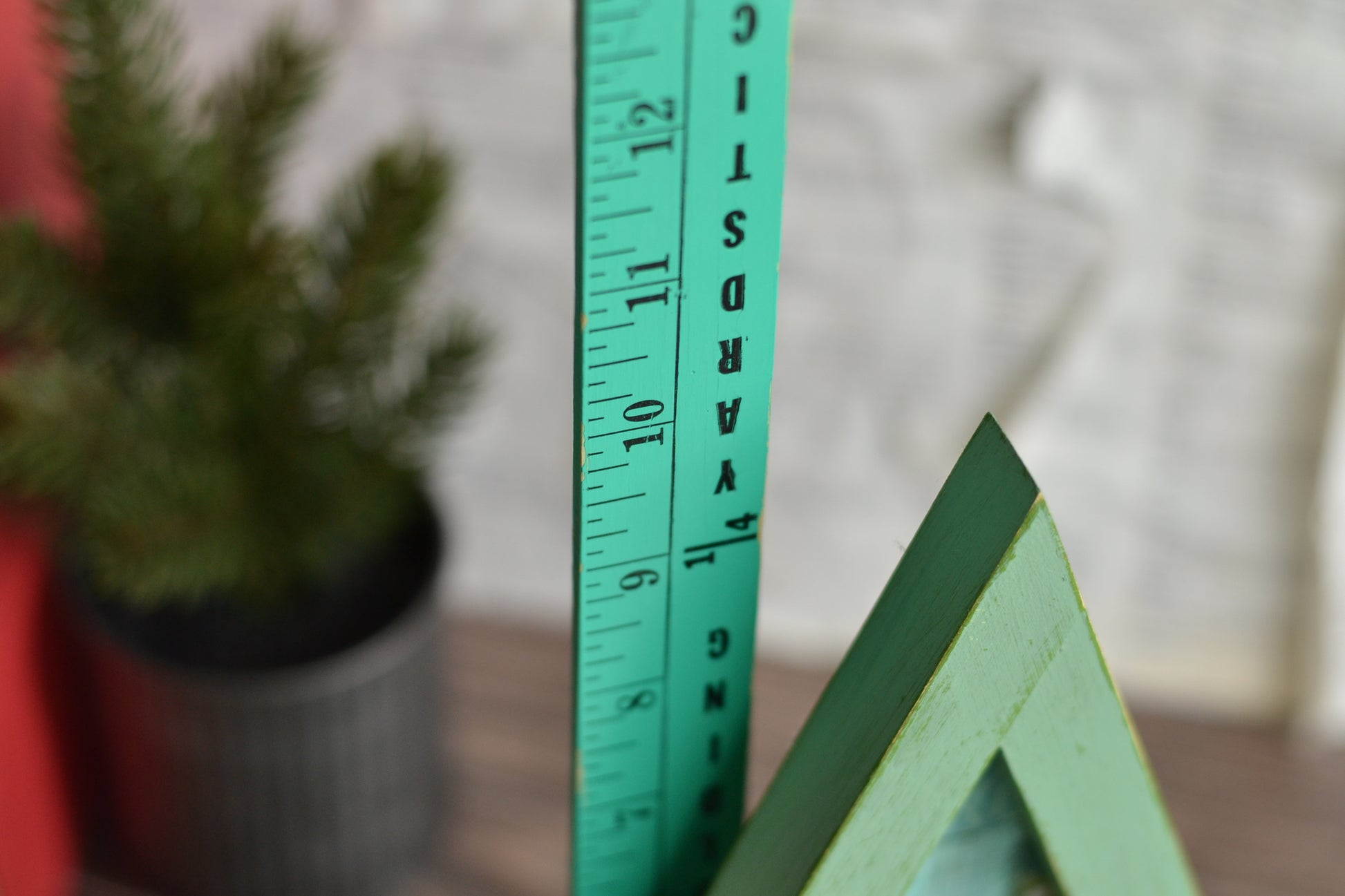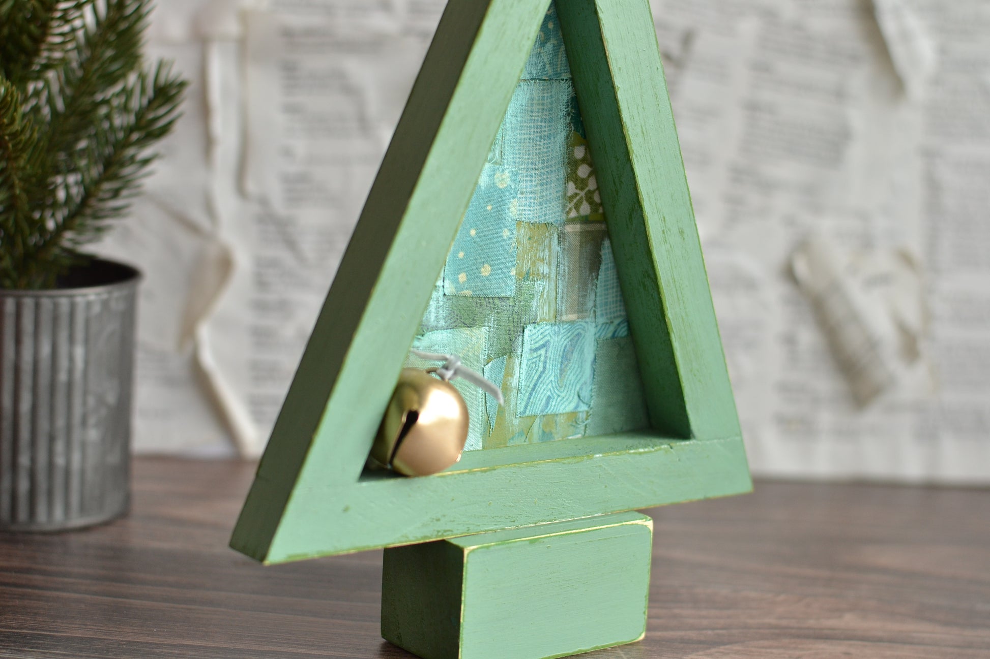 The prettiest green tree with a patchwork style backing.